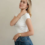 The Lune Bangle is a reimagining of a timeless classic—equally suited to the wrist of a woman in the 1950’s as it is today. Inspired by slow mornings, undone hair, and the scent of freshly baked pastries drifting through Parisian streets—it’s the kind of piece that goes with everything. A subtle glint on the wrist, like the sparkle of city lights along the Seine. Life is all about tiny, shiny moments like this.