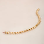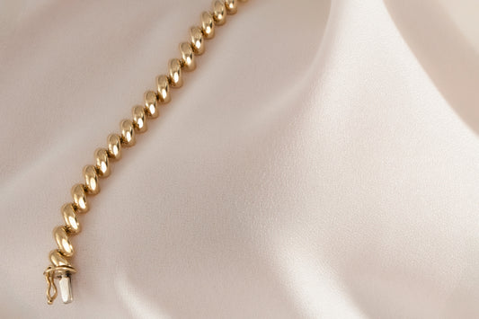Traditionally, this style of bracelet is machine-made with hollow links, while ours is crafted with solid beads for a luxurious feel and lasting durability. Curious about the weight? Just imagine a bowl of solid gold mini elbow macaroni—it’s surprisingly substantial in the best way.
