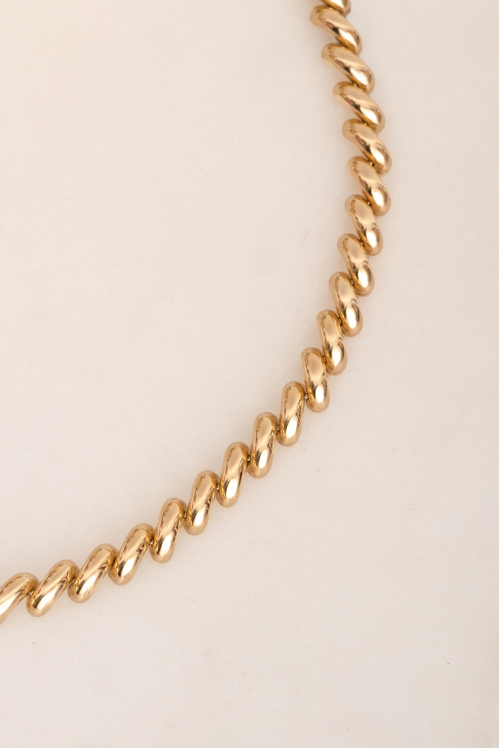 A modern take on a heritage classic, the Macaroni bracelet draws inspiration from the iconic San Marco design—its sculptural form echoing the graceful arches of 15th century Venetian bridges. Beloved for its fluid interlocking links, the design rose to prominence within glamorous fashion circles of the 1970s and 1980s. The piece embodies the era's love for bold gold jewelry and has since become synonymous with luxury and timeless European elegance.